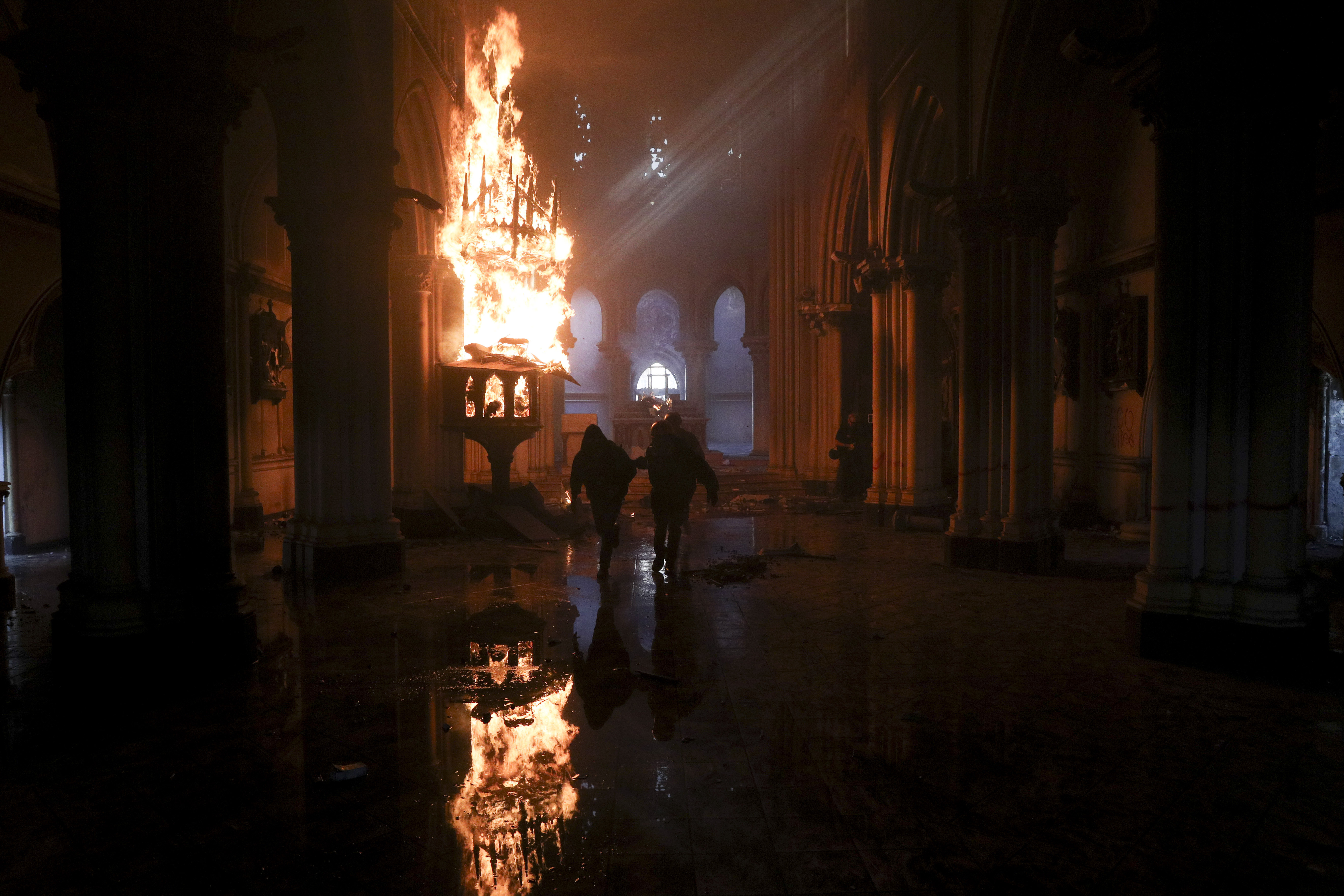 По-рано вчера гневна група хора освирка и заплаши кмет от Комунистическата партия. По-късно маскирани лица извършиха нападение със запалителни бомби срещу църква и сграда на полицията. Вандали нападнаха друга църква в Сантяго, като подпалиха купола й. Съседните улици се изпълниха с дим.