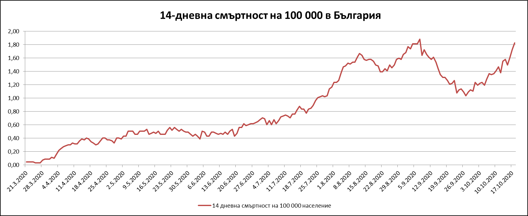 Въпреки значителния ръст на заболеваемостта България запазва мястото си сред 31 страни в Европа, отчете главният държавен здравен инспектор доц. Ангел Кунчев. На 21-во място сме по новозаразени, на четвърто на Балканите. По смъртност отстъпваме с едно място - България сега е 9-о място и четвърто на Балканите.
