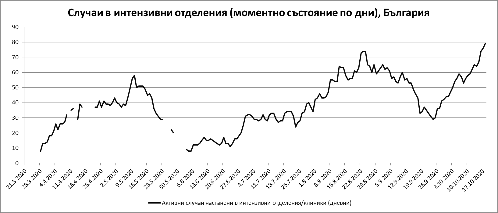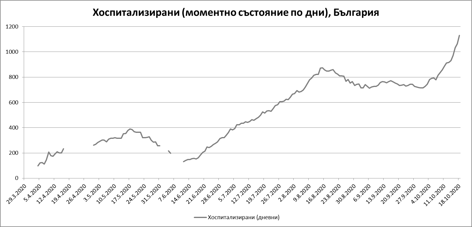 Ето как изглежда разпространението на COVID-19 в България, според графиките и таблиците, представени на редовния брифинг на Националния оперативен щаб на 22 октомври.