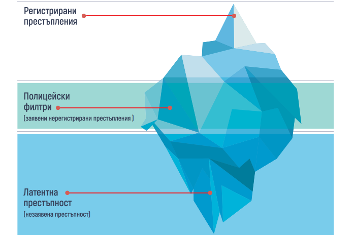 Авторите на изследването показват "айсберг" на престъпността, до който стигат, макар и да отчитат множество положителни тенденции - като например липсата на възможност да се скрие заявен сигнал на тел. 112.