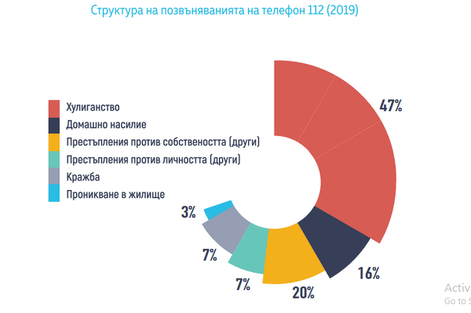 Забележителното тук е, че се звъни за по-леки престъпления. Делът на хулиганство е най-висок (47%), следва домашното насилие - 16 на сто. При него изследователите отчитат висок ръст, което се дължи вероятно на многото активни кампании на НПО и на самото МВР.