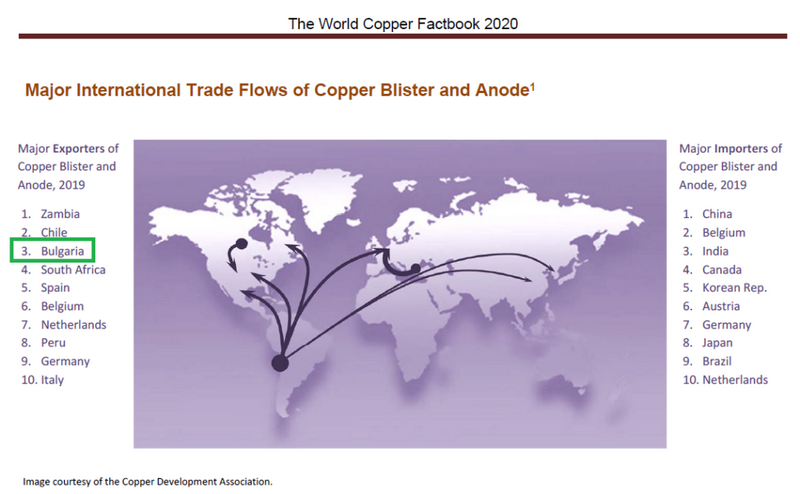 Въпреки малките си размери, страната ни заема много важно място в глобалния пазар на мед благодарение на минно-металургичния клъстер в Средногорието, където са концентрирани трите големи мини на Асарел-Медет, Елаците мед и ДПМ Челопеч, както и металургичният комбинат на Аурубис България. Мините поставят страната ни на трето място в Европа по добив на медни рудни. Металургичният комбинат между Златица и Пирдоп обаче има толкова голям капацитет, че въпреки местния добив България се нарежда сред топ 6 на вносителите на медни концентрати в света. Произведената мед у нас е толкова много, че продажбата й дава почти 10% от износа на България и ни превръща в третия най-голям износител на нерафинирана мед в света през 2019 г.