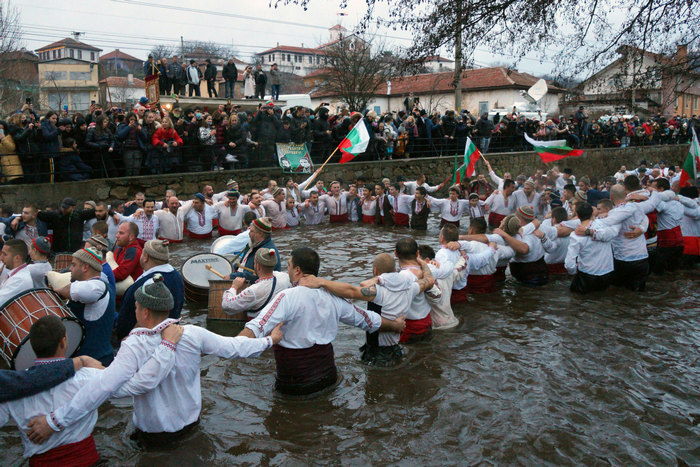 За ежегодното ловене на кръста в ледените води нямаше официална подготовка, имаше дори призиви към хората тази година да не идват на ритуала. Но те дойдоха. Влязоха в реката, прегърнаха се без никаква физическа дистанция и задрусаха хорото. Нямаше маски.