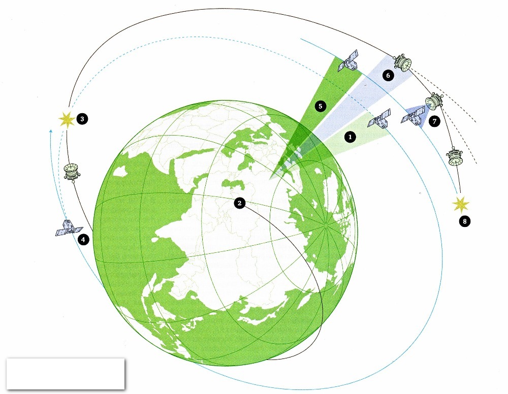 4. Спътникът-цел маневрира, за да напусне зоната на прехващане.