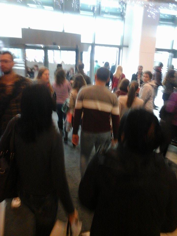 Въпреки натрапчивото повтаряне на тревожната новина хората много спокойно и бавно се насочиха към изходите. Персоналът на мола бе отворил широко всички врати. Опразването на мола мина без каквато и да е паника.