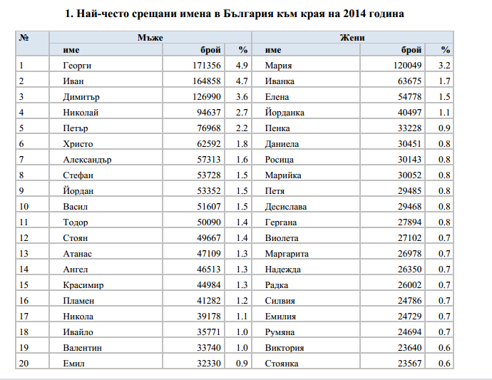 От националната статистика са преброили над 68 000 различни имена, носещи хората у нас.