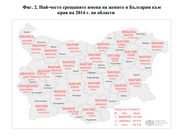 И при новородените през 2014 г. се запазва тенденцията за по-голямото разнообразие на имената на момичетата (3 278 имена) отколкото на имената на момчетата (2 811 имена).