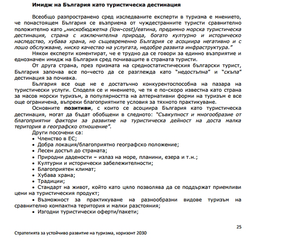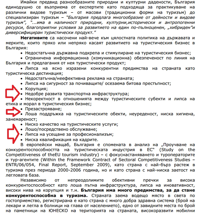 Въпреки това, Министерството на икономиката и енергетиката съвсем точно е посочило негативите в туристическия образ на страната. Те са: