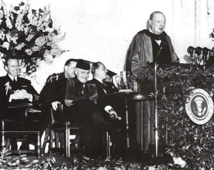 На 5-ти март 1946 г. тогавашният британски премиер Уинстън Чърчил гостува в Уестминстърския колеж във Фултън, Мисисипи. Пред учениците на частния колеж той прочита речта, станала известна по-късно като "Сухожилията на мира".