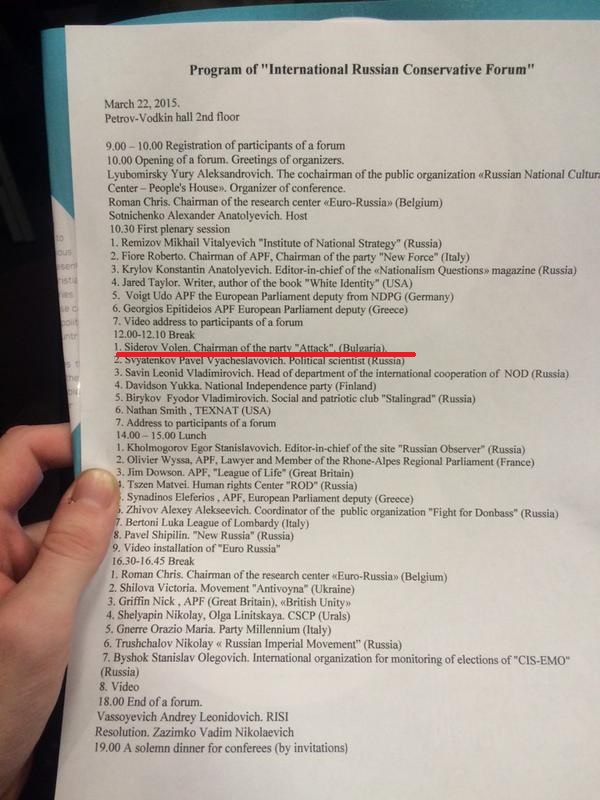 Предвид факта, че в България има само една крещящо проруска партия напоследък - "Атака", никой не се изненада, когато организаторите на форумасъобщиха, че тя ще има свой представител в Санкт Петербург. Никой, освен... "Атака".