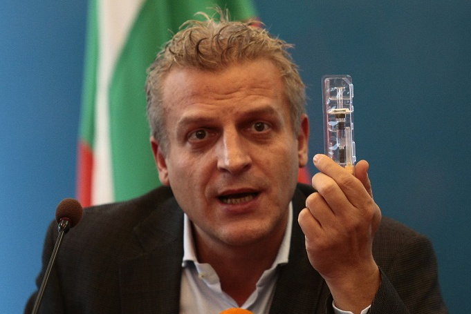 Министър Москов показва внесената от Турция ваксина срещу Хепатит Б.