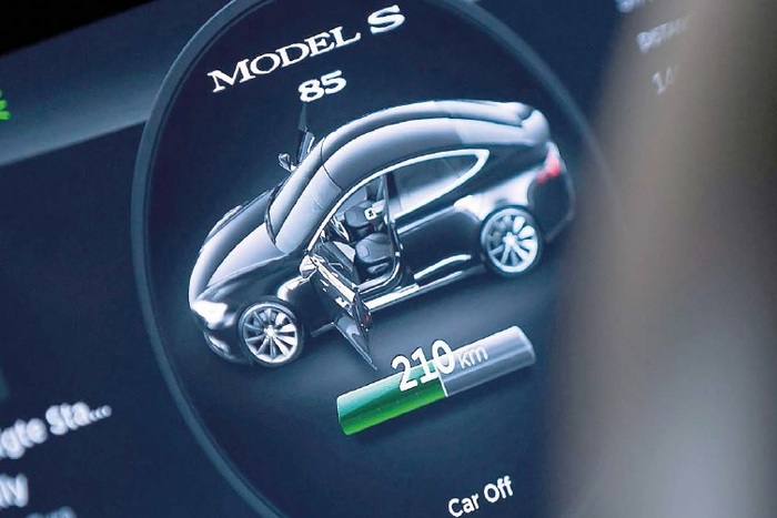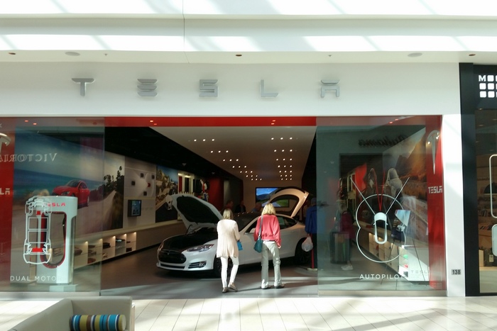 Всъщност думата магазин едва ли подхожда на неголямото помещение, където има само една кола от модела S. Това по-скоро е шоурум, в който любопитни хора са накацали като мухи последния вик на автомобилната техника. Тук има само една кола, зарядна станция и „съблечено“ шаси, на което се виждат отделните части, които съвсем не са много. „Тесла“ действително е впечатляваща – набира 100 км за 3,2 секунди (два пъти по-бързо от BMW) и може да измине 430 км с една зареждане. Още от самото начало Мъск изобрети супербързо зарядно устройство за литиево-йонните акумулатори на колата (високоусъвършенстван вариант на същите батерии, захранващи днешните смартфони), което позволило на репортер от „Ню Йорк таймс“ с кратко презареждане да измине над 800 км с висока скорост. Изобретателят не спира да изненадва, техничарското списание „Уайърд“ разкри, че собствениците на „Тесла“ скоро може да прикачват колата си към контакта, без да стават от мястото на водача. Това е роботизираното зарядно устройство, чийто кабел прилича на механична змия. Той се плъзга по пода и сам включва щепсела си към колата. Мъск с увереност гледа към пазара и планира до 2025 г. да увеличи до милиони бройки производството на „Тесла“.