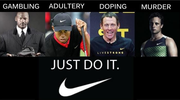 Nike обаче не вярва на сълзи. Текстът в такива случаи винаги е сходен: Ние сме загрижени, натъжени и изненадани от новините около… еди кой си. Взехме решение да прекратим нашето сътрудничество докато тече разследването...