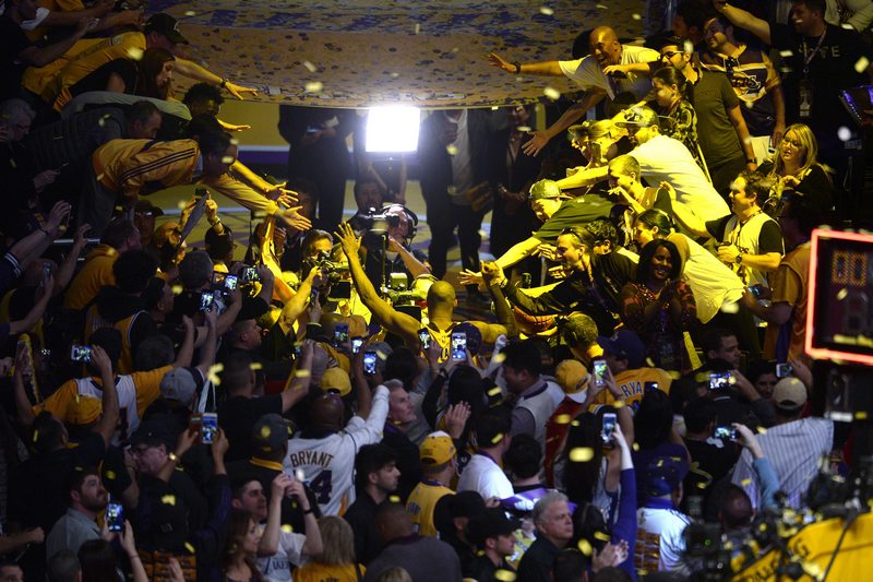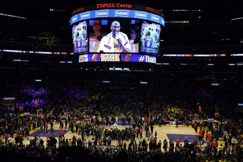 На Кобе бе устроено кралско изпращане след срещата, билетите за която бяха разпродадени много отдавна, истерията за мача беше просто неописуема. Лично легендата на "езерняците" Меджик Джонсън представи големия си наследник. На видео бяха пуснати послания от величия като Шакил О'Нийл, Дерек Фишър, Кевин Дюрант, Деуйн Уейд, Грег Попович, Стеф Къри, Леброн Джеймс, Пау Гасол, Ламар Одъм, Кевин Гарнет, Фил Джаксън...