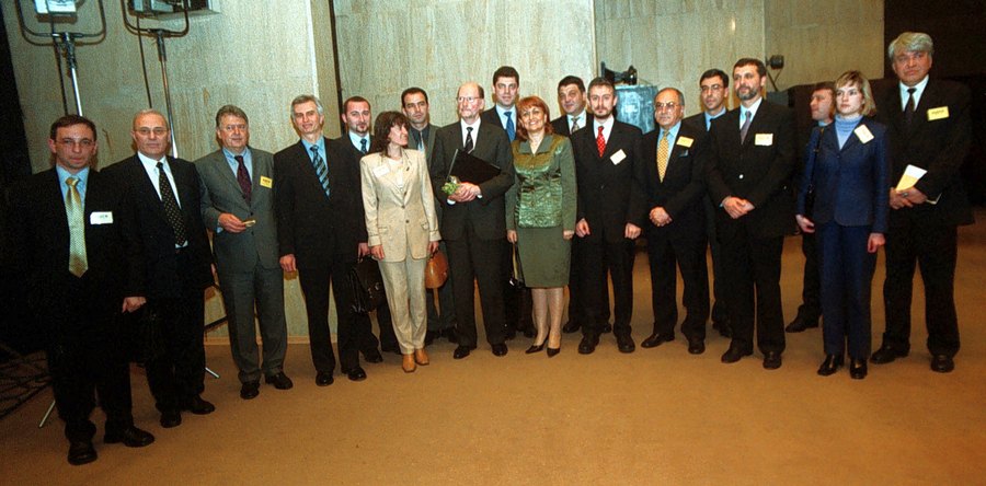 Саскорбургготски и някога най-верните му. От ляво на дясно: Веселин Близнаков, Пламен Панайотов, покойният вече Георги Петканов, Огнян Герджиков. В гръб: Владимир Дончев, Николай Свинаров, Нина Чилова, Милко Ковачев. Най-вдясно: Антон Станков.