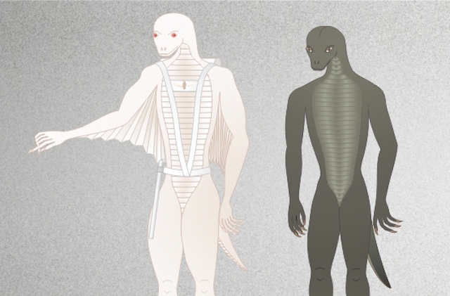 В тези два типа има и различни раси. На върха са драко рептилите, които са крилати албиноси. Под тях са рептоидите, които нямат крила, и са с кафява или зелена кожа. Рептоидите са войници и учени и са отговорни за тайните правителствени програми.