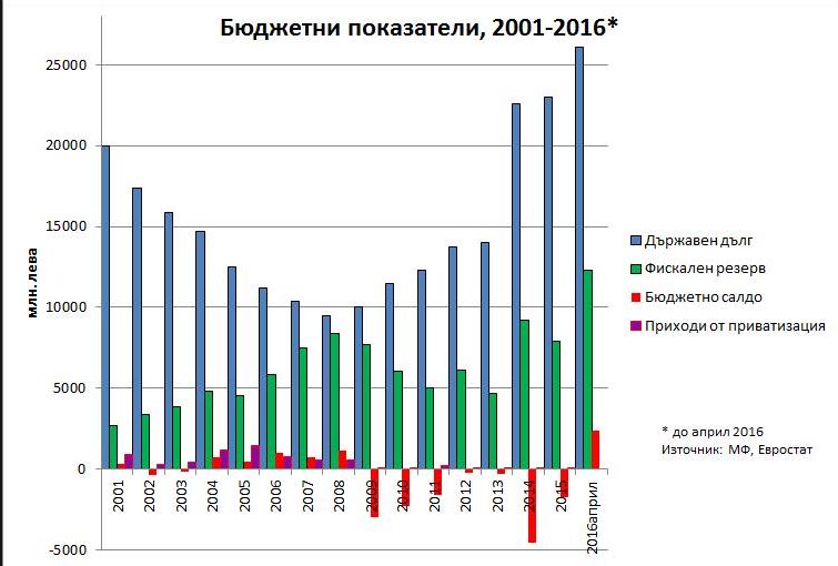 Всичко това е видно от данните за периода 2001-2016 г., когато в България имахме от всичко: години с дефицит и излишък, с и без приватизация, с и без емисии на нов дълг или погасяване на стар.