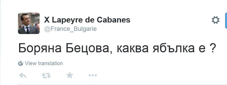 Аз нямам никакъв... никакви задръжки да кажа на този посланик, че Бецова първо не е ябълка и второ не е гнила. Бецова е добър прокурор, коментира той тогава задочно и френския посланик.