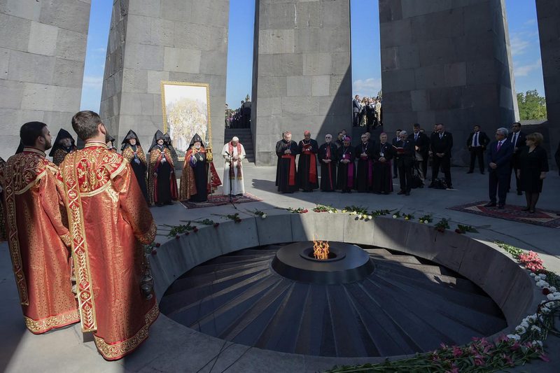 Франциск се спря рано сутринта в Цицернакаберд, в мемориала и музея, посветени на жертвите от геноцида. Развълнуван, той се включи в молитва заедно с арменския президент Серж Саркисян и главата на Арменската апостолическа църква Католикос Карекин II.