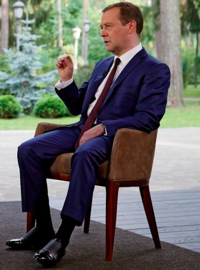 "Медведев с обувки Jimmy Choo за 50 000 рубли поздравява пенсионерите с техните неиндексирани пенсии. Дръжте се!", пише в профила в туитър на ФБК.