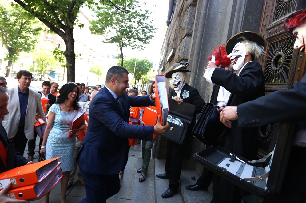 Иначе внасянето на подписката бе ефектно. Младежи от "Република БГ" с маски на жокери oт статуквото разиграха сценка, в която обясниха същото - че политиците няма да допуснат и този референдум да се осъществи (както направиха вече веднъж с референдума по изборни въпроси, предложен от президента Росен Плевнелиев, б.р.).