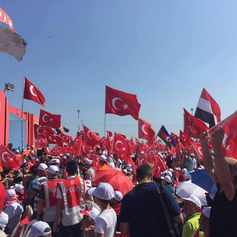 На проявата не са се използвали никакви партийни символи. Грандиозното събитие е организирано в името на родината, в защита на демокрацията, и в памет на геройски загиналите в опита за метеж от преди няколко седмици. То се е предавало на екрани, монтирани във всички 80 провинции на Турция.