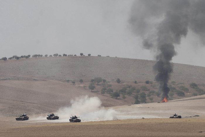 Над хълмовете край Джараблус се издигнаха бели и сиви стълбове дим, видими от турския град Каркамъш, съобщава Ройтерс. Чува се силният тътен на артилерийския огън. Турските танкове стрелят на метри от границата.