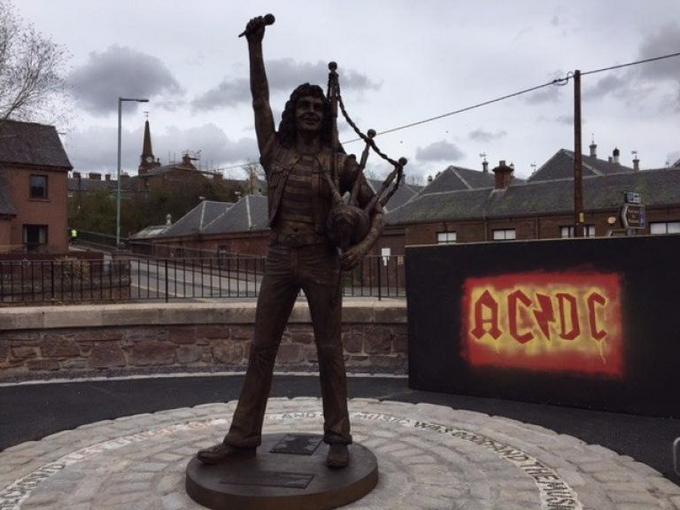 Е, кой да заслужава?! Да - Бон Скот имаше малка паметна плоча във втората му родина - Австралия до откриването тази година на тази красива статуя в Kirriemuir, Шотландия. На събитието присъстваха едни от най-ранните членове на AC/DC Марк Евънс и Тони Куренти, а за атмосферата може да съдите сами от този клип.