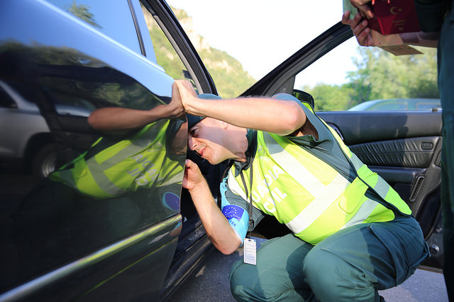 На кадрите се виждат проверки както на лица, така и на автомобили, освен по "зелената" граница, и на официални външни ГКПП на страната.