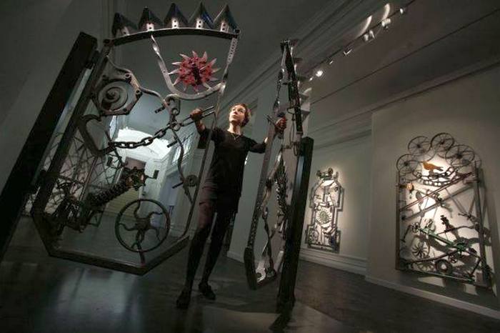 Артистът използва намерени обекти и скрап от сметища — „всичко от селскостопанско оборудване, детски играчки и кухненски прибори до антикварни оръжия, вериги, зъбни колела и оси“, според пресслужбата на казино „MGM Нашънъл Харбър“.