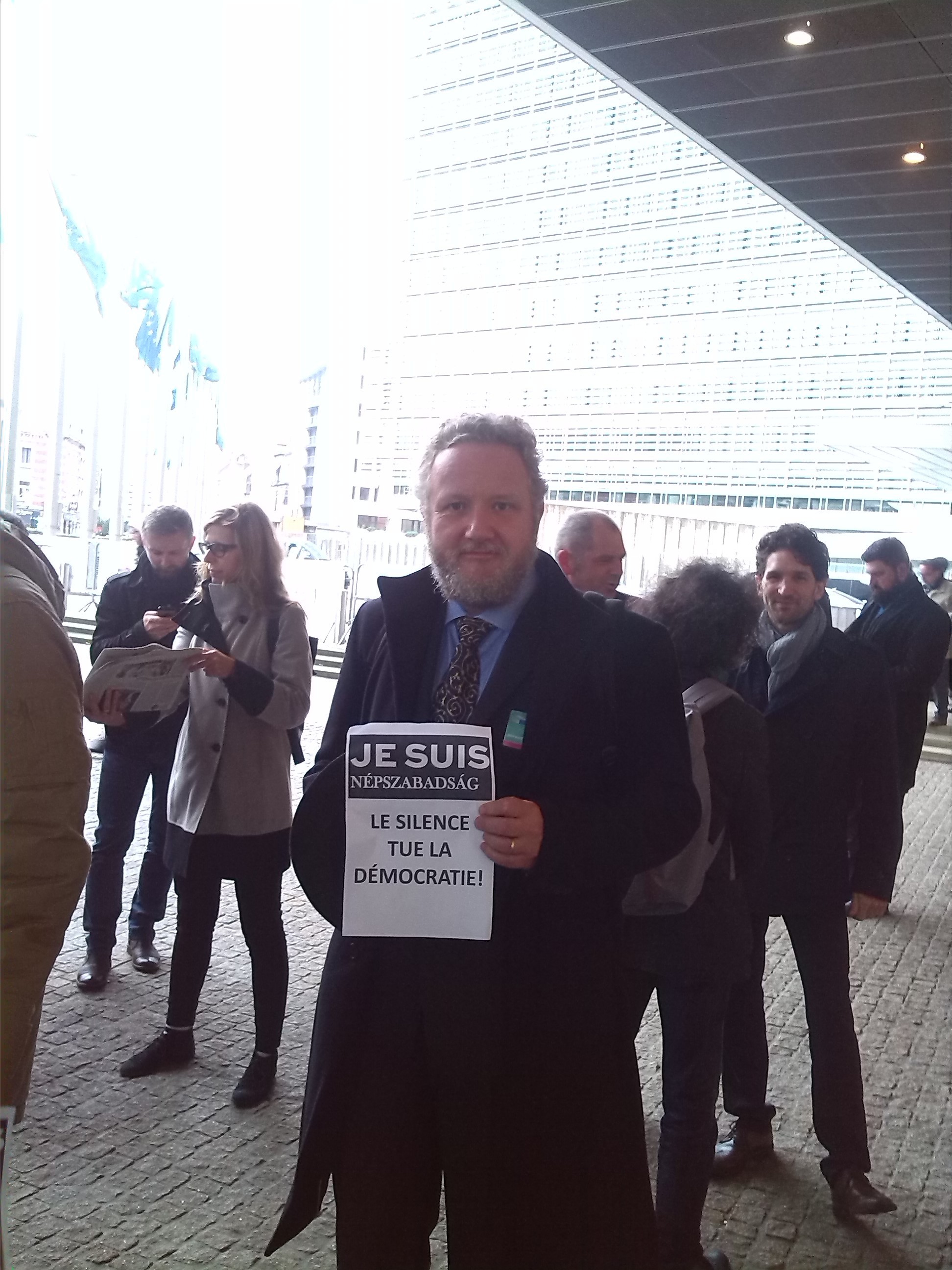 „Ако днес това се случва в една държава-членка на ЕС, утре ще стане в друга“, каза Каталин Халмай, кореспондентка на вестника в Брюксел пред импровизирания митинг.