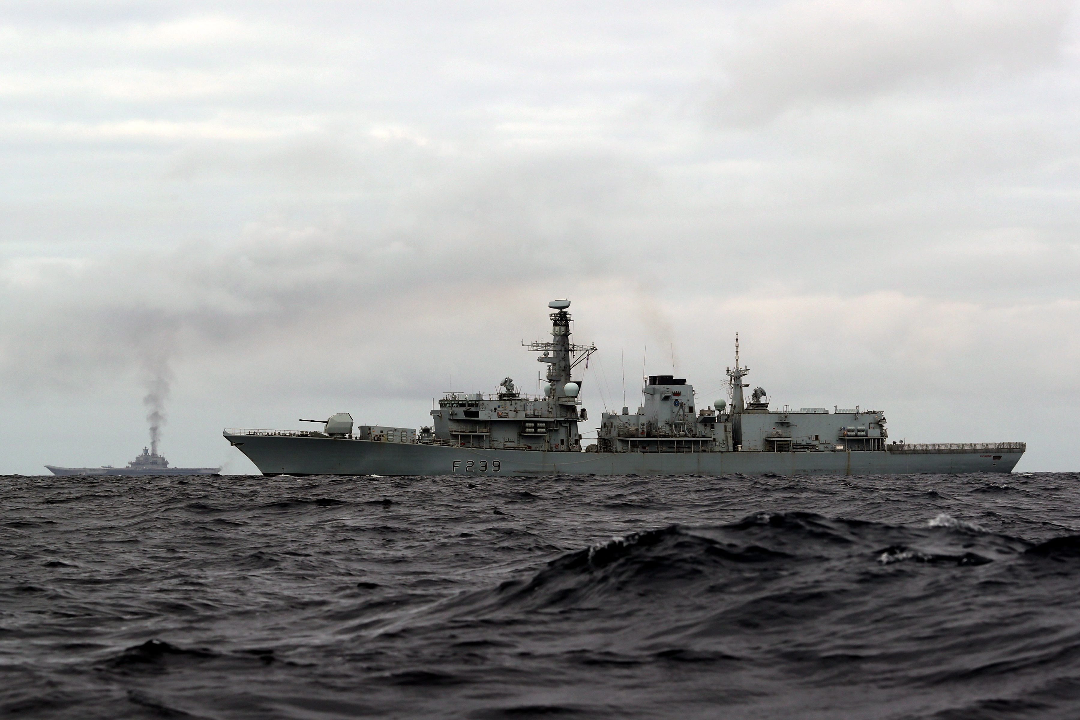 Великобритания прати свои кораби, които да посрещнат и ескортират руските съдове, съобщи в. "Гардиън". Още на 18 октомври от пристанище Портсмут отплавал разрушител от клас "45 Дънкан". Той трябва да се присъедини към фрегатата "Ричмънд" и разрушителя "Драгън", плаващи от Португалия на север.