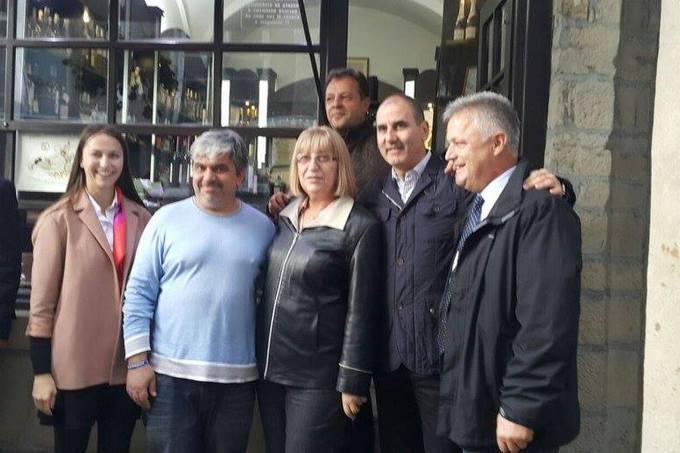 Не е за подценяване жанрът: снимка с отрудения пролетариат. Кандидатът за президент е третата отляво надясно...