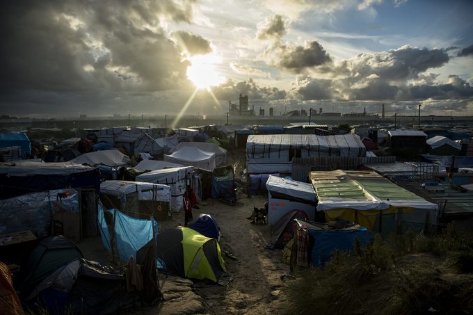 Бежанците в Кале нощуват в примитивни, саморъчно направени бараки или палатки, направо върху земята.