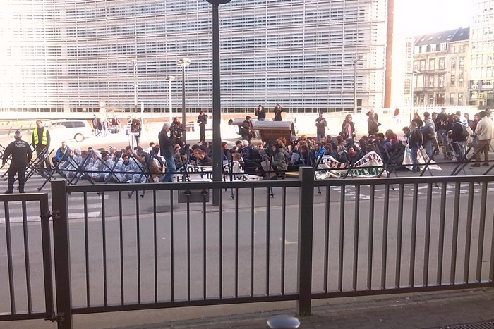 Цивилната охрана успя да ги повали на земята и да им сложи белезници, докато по-голямата част от протестиращите организира отвън седящ протест, скандирйки лозунги против СЕТА.