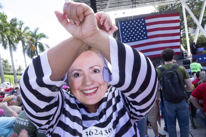 Тръмп каза, че нейното избиране ще доведе до "безпрецедентна и продължителна конституционна криза" поради предстоящото разследване, и намекна, че американците не биха искали да живеят отново с Клинтънови в Белия дом, както бе през 90-те г. на ХХ век.