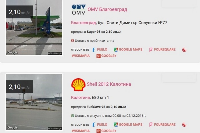 В бензиностанциите "Круиз" (собственост на големия търговец на едро "Сакса") бензин А-95 се продава за 1,97 лв./л, а във "ВМ петролеум" на варненския бизнесмен и неуспял кандидат за президент Веселин Марешки цената е 1,75 лв./л (вчера беше 1,73 лв./л).