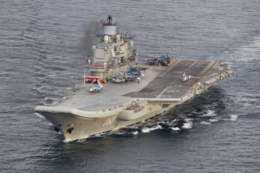 Този самолетоносач, който е на въоръжение от средата на 80-те г. на ХХ век, когато бе част от съветския флот (и се наричаше последователно "Рига", "Леонид Брежнев" и "Тбилиси"), извърши едва няколко разгръщания и всички те не бяха по-далече от Средиземно море. Както съобщават медиите, проблеми със замръзнали тръби довели до това, че за екипажа от 2000 души останали само 25 тоалетни. През 2012 г. той се повреди в Бискайския залив и трябваше да бъде теглен хиляди мили до Мурманск. 2009 г. бе особено неуспешна за самолетоносача - той стана виновник за разлива на стотици тонове петрол край бреговете на Ирландия, а край бреговете на Турция на борда му избухна пожар, в резултат на който загина един член на екипажа.