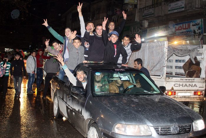 Световните агенции разпространиха снимки и клипове, на които се виждат ликуващи жители на Алепо, които посрещат армията на Асад.