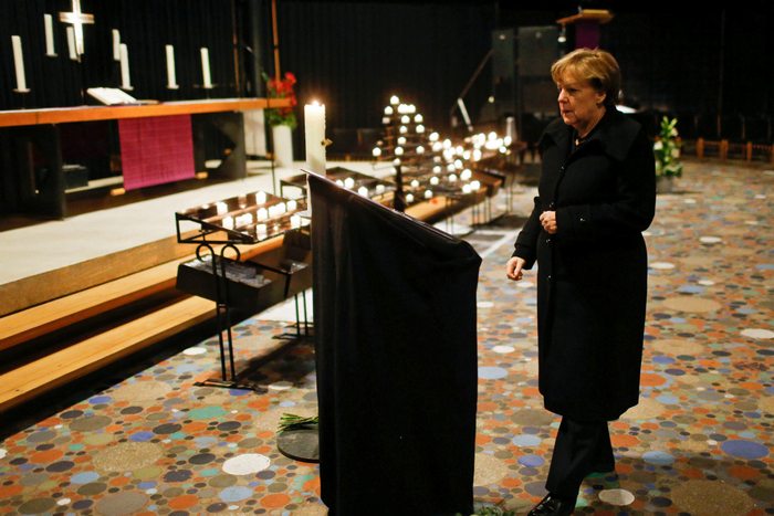 Тя обяви, че свиква Съвета за сигурност. Вечерта те посети площад “Брайтшайдплац”, където снощи на коледен базар терорист отне 12 човешки живота и рани десетки.