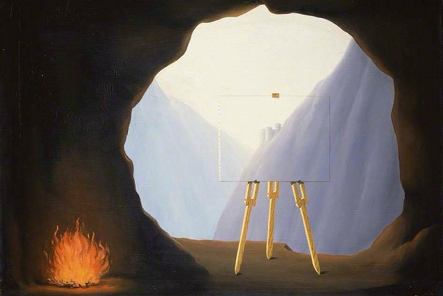 Рене Магрит рисува La Condition Humaine (Човешкото състояние) върху част от „Омагьосана поза“, след като тя му е върната от изложба.