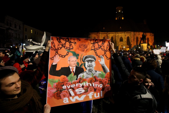 Хората носеха плакати "Не се страхувайте, страната се събуди!" и "Нощ след нощ ще искаме справедливост". Репортери съобщават за скандирания "Село от глупаци пише законите в Румъния", "Крадци!", "Долу комунистическото правителство", "PSD е червена чума".
