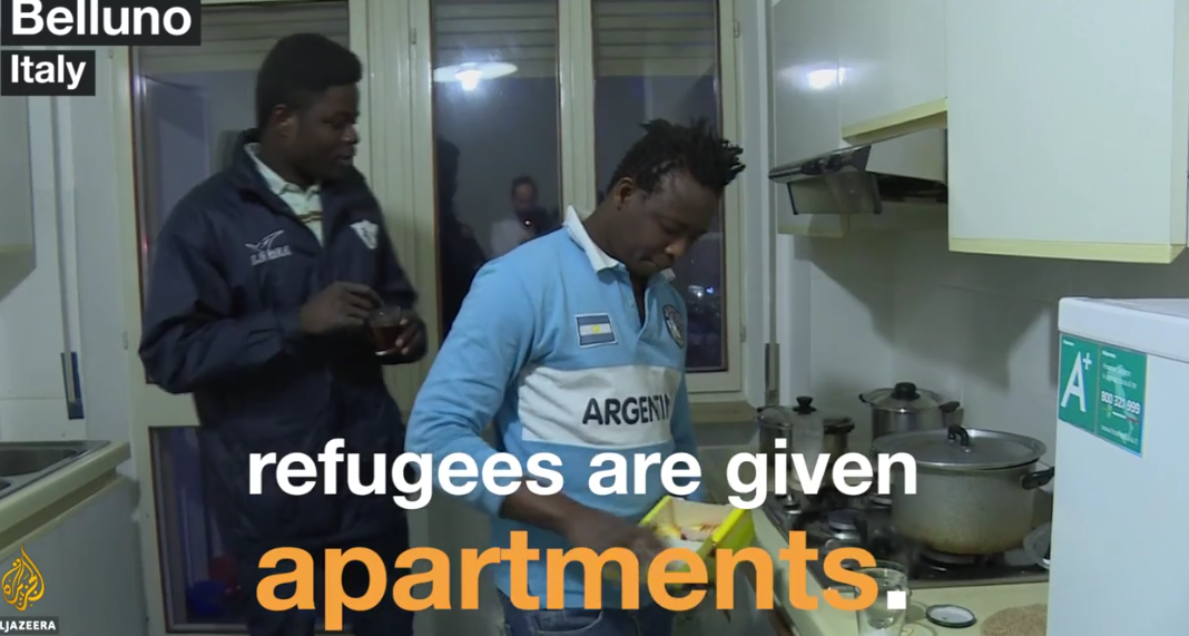 Снегът вали на парцали в Белуно, но група млади мъже от Африка в добро настроение чистят пространството около военна барака, която трябва да стане нов културен център. Така започва репортаж на АФП за градчето в подножието на Доломитите.