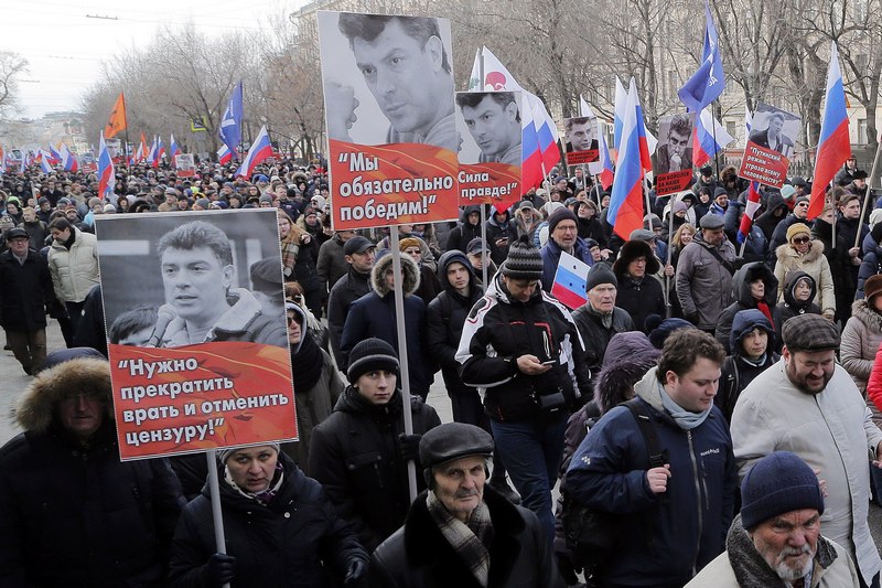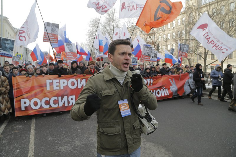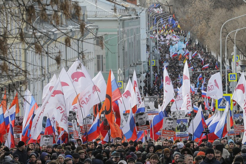 Десетки хиляди се включиха във възпоменателното шествие в Москва в памет на руския опозиционен лидер Борис Немцов, който беше застрелян до Кремъл на 27 февруари 2015 г.