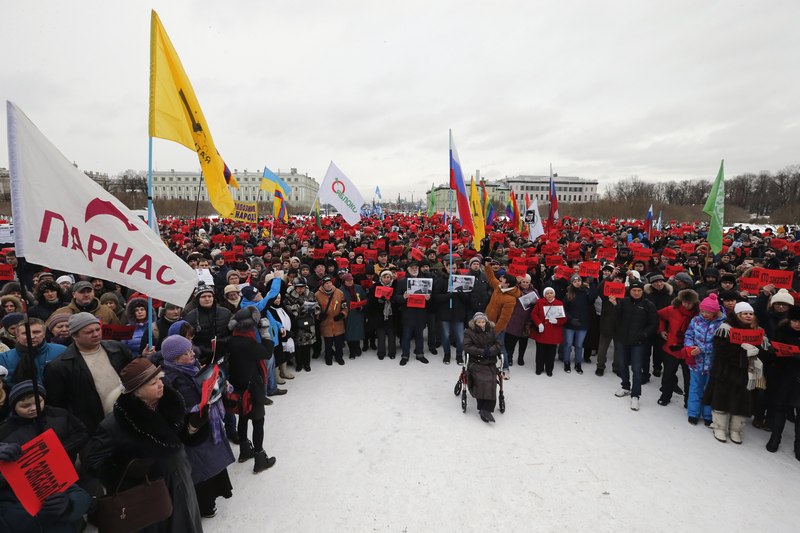 Шествия имаше и в Санкт Петербург, и в други руски градове. Гражданите носеха плакати с надписи като: "Войната с Украйна е престъпление на Путин", "Русия без Путин" и "Аз съм против анексията на Крим".