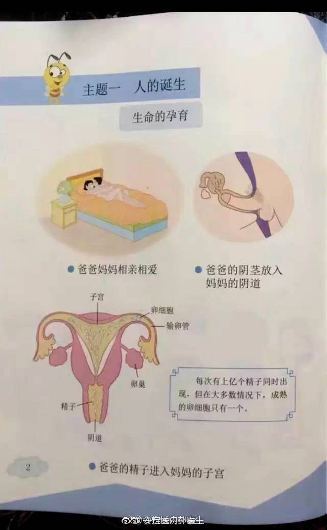 Страниците на учебника с прости илюстрации учат децата за секса и зачеването.