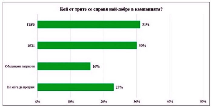 Според данните ГЕРБ и БСП се справят еднакво в кампанията. И силите са изравнени.