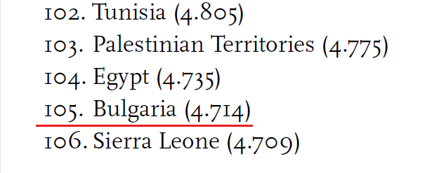 Искате ли да знаете къде е България в тази класация? Според оповестения днес Световен доклад за щастието страната ни се нарежда на 105-о място от 155 държави - между Египет и Сиера Леоне.