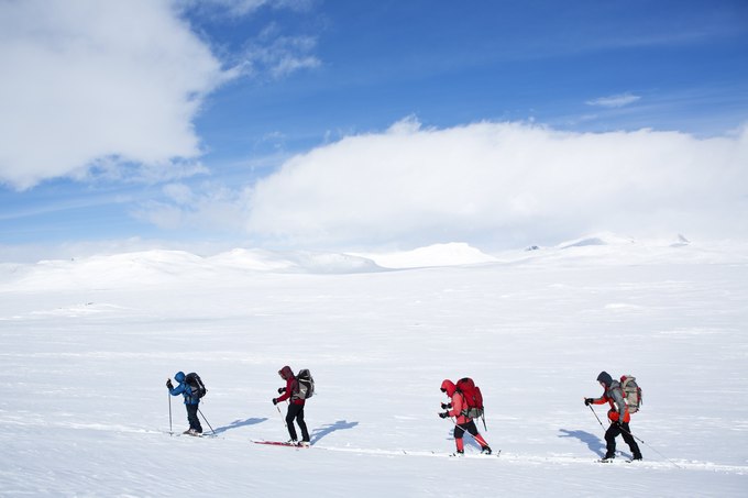 Тези скиори са на преход в планината между Томасхелерен и Тийн.