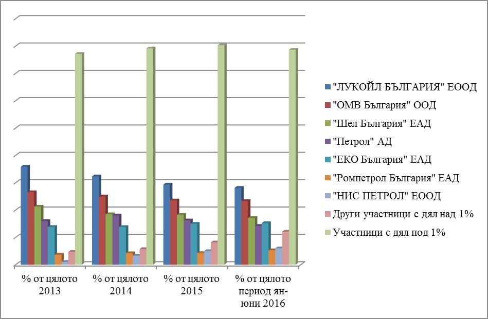 В документа обаче има таблици на дяловете на големите вериги в продажбите на бензин и дизел. Конкретните стойности са заличени, но графиката може да ориентира.